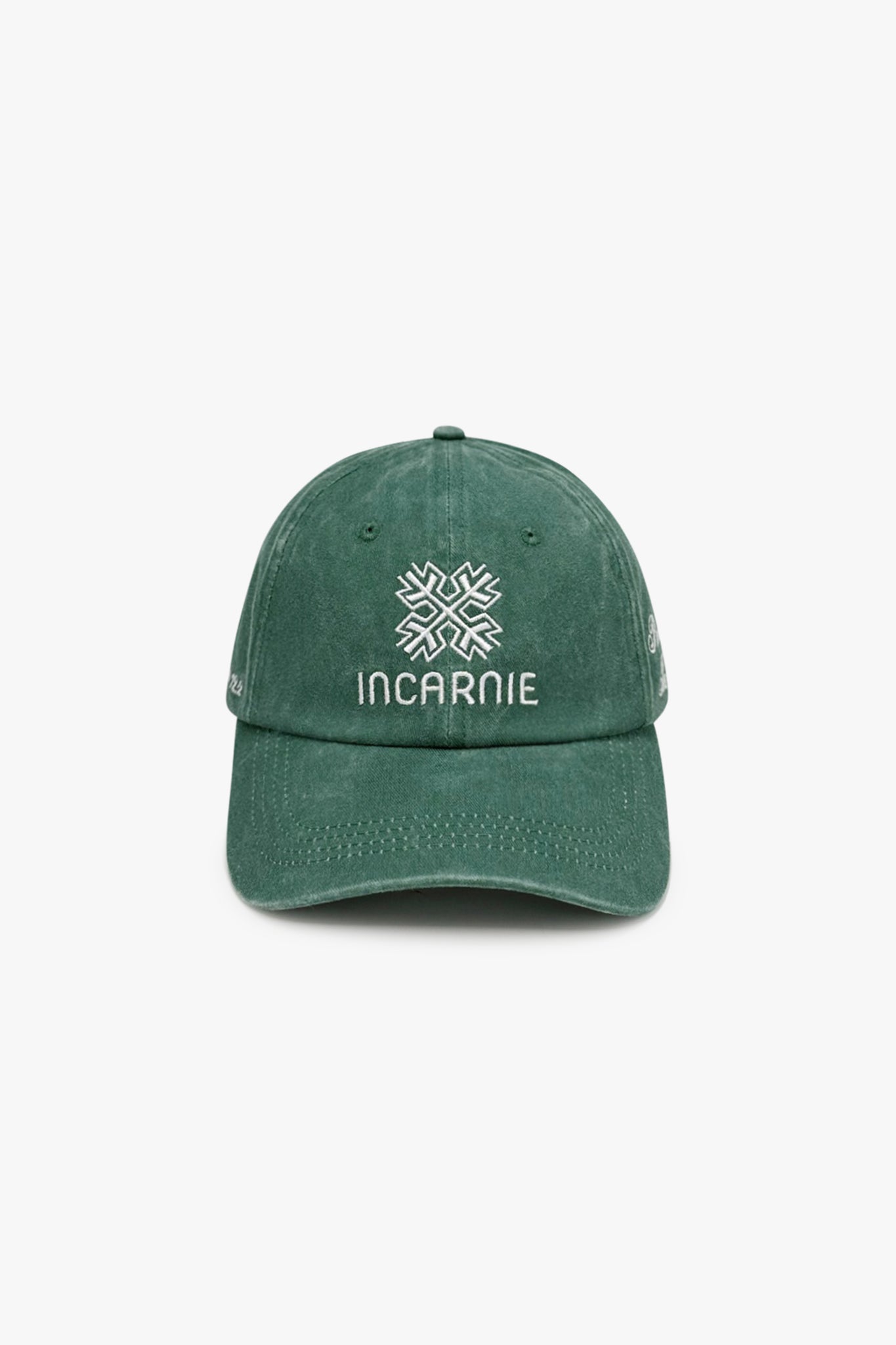 The Emblem Renewal Of The Mind Cap is crafted in a washed green finish that speaks of process - softened, worn, lived-in. Featuring tonal Incarnie emblem embroidery at the front, the cap carries subtle declarations of faith and identity throughout.