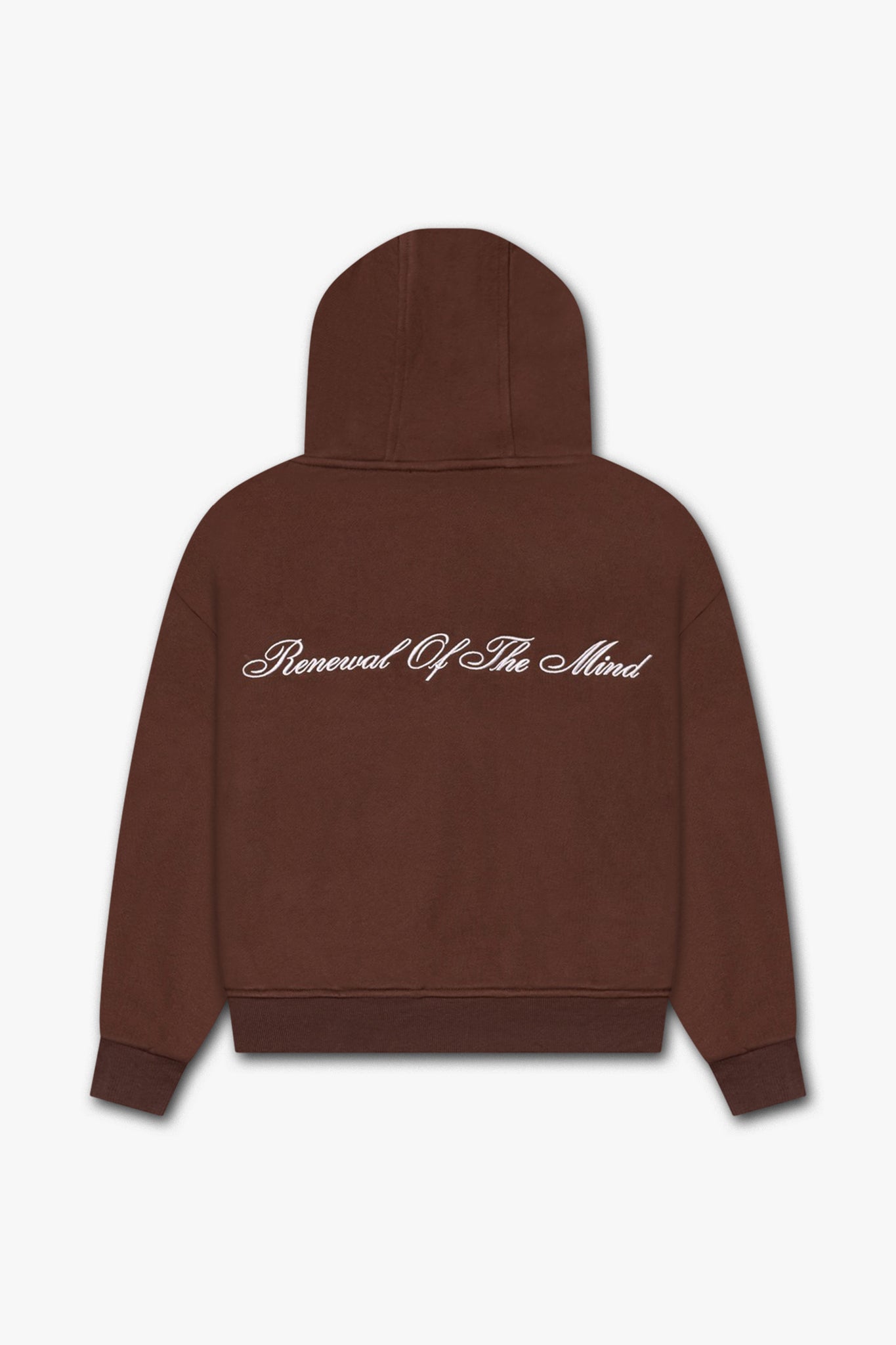 “Renewal of the Mind” embroidery on hoodie back